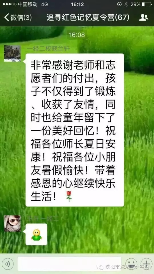 兩天的活動(dòng)在少年宮老師細(xì)心周到地安排下,孩子們過得既充實(shí)又開心。滿洲省委舊址里認(rèn)真地聆聽講解、樹蔭下聽老英雄追憶往事,沈陽市團(tuán)校內(nèi)揮汗如雨的歷奇訓(xùn)練、夜晚多功能廳內(nèi)興高采烈地聯(lián)歡、荷花池旁的駐足、科技館里探索科學(xué)世界的秘密……這一幕幕都深深地刻在了孩子們的腦海里,洪亮的口號是孩子們堅(jiān)定的信念,張張笑臉是活動(dòng)過程中成功的印記。白天孩子們共同享受團(tuán)隊(duì)生活的快樂,夜晚躺在床鋪上一起述說童年的趣事。閉營儀式上,同學(xué)們相擁而泣,短暫的兩天讓大家結(jié)下了深厚的友誼。