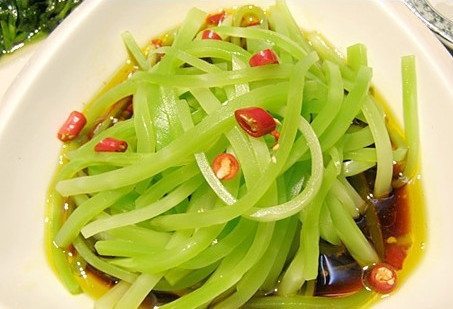 1、萵筍去皮,萵筍用插板擦成粗細(xì)均勻的絲;