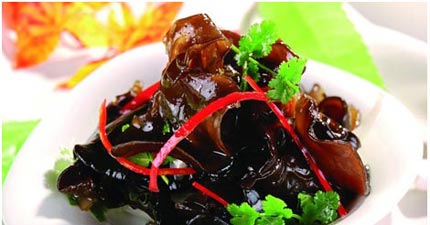 1、黑木耳洗凈并撕成小塊,放入燒沸的水里煮2-3分鐘后起鍋放涼;