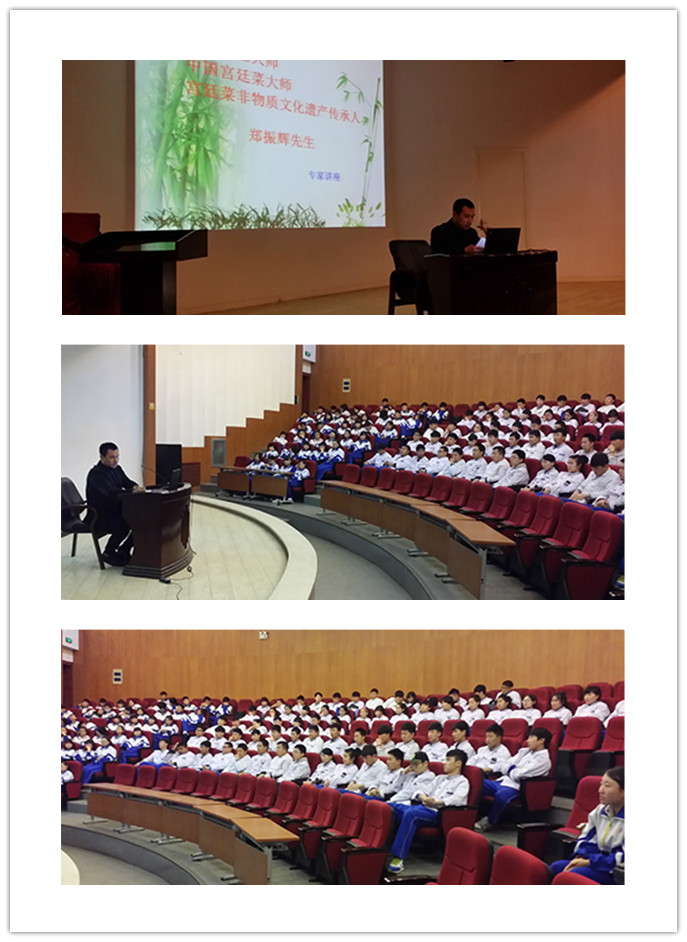 學(xué)校定期舉辦烹飪專家講座,中國烹飪大師、宮廷菜大師、沈陽璟星酒店行政總廚鄭振輝先生來我校進(jìn)行"宮廷菜演繹"及"酒店廚房六常管理法"的講座。我校烹飪專業(yè)全體教師及在校生積極參與本次活動(dòng)。通過本次活動(dòng)全體教師和學(xué)生收益頗豐,不僅開拓了視野,豐富了專業(yè)知識(shí),個(gè)人專業(yè)素質(zhì)也得到了顯著提高。達(dá)到了預(yù)期的效果,取得了廣泛的好評(píng)。