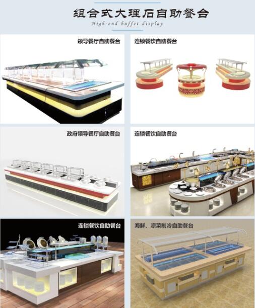 東方和利為餐廳、企事業(yè)單位食堂、連鎖餐飲等自助餐廳場所提供各種類型的高端大理石自助餐臺(tái),各種大理石臺(tái)面材質(zhì)均可選擇。各功能單元包括:涼菜制冷熱菜保溫、海鮮制冷、米飯自取、湯勺碗筷、碗碟倉等,各單元可自由組合。東方和利可依據(jù)餐廳整體環(huán)境,空間尺寸既定菜式和最大進(jìn)餐人數(shù),進(jìn)行合理的規(guī)劃設(shè)計(jì),設(shè)計(jì)靈活,可固定、可移動(dòng)、可組合、做到功能齊全,造型合理,層次分明,線條流暢、風(fēng)格多樣,材料實(shí)用。既實(shí)用、耐用且美觀時(shí)尚。