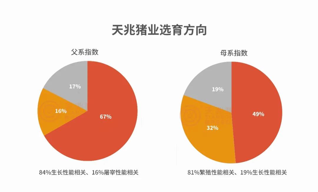 天兆豬業(yè)經(jīng)過充分的市場(chǎng)調(diào)研,針對(duì)中國市場(chǎng)的需要,結(jié)合實(shí)際生產(chǎn)條件,以引進(jìn)的加系、法系種豬為基礎(chǔ)進(jìn)行持續(xù)選育,并在選育方向上強(qiáng)化了繁殖性能、生長(zhǎng)性能、屠宰性能等性狀所占的權(quán)重,通過十多年的持續(xù)選擇,不斷提升種豬綜合性能水平。