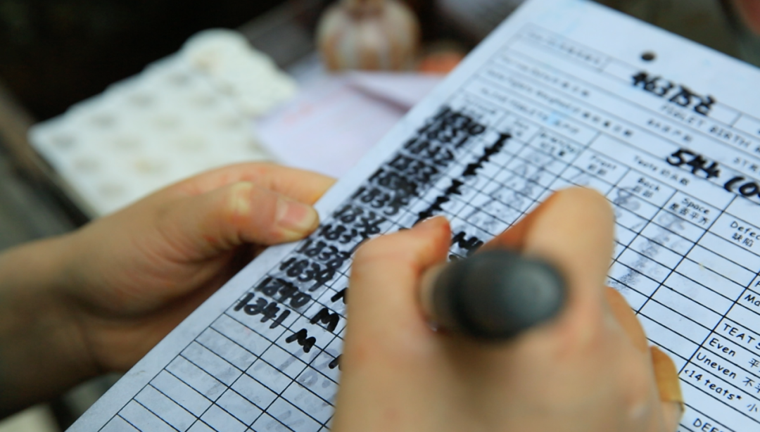 ☉天兆豬業(yè)工作人員正在記錄相關(guān)數(shù)據(jù)