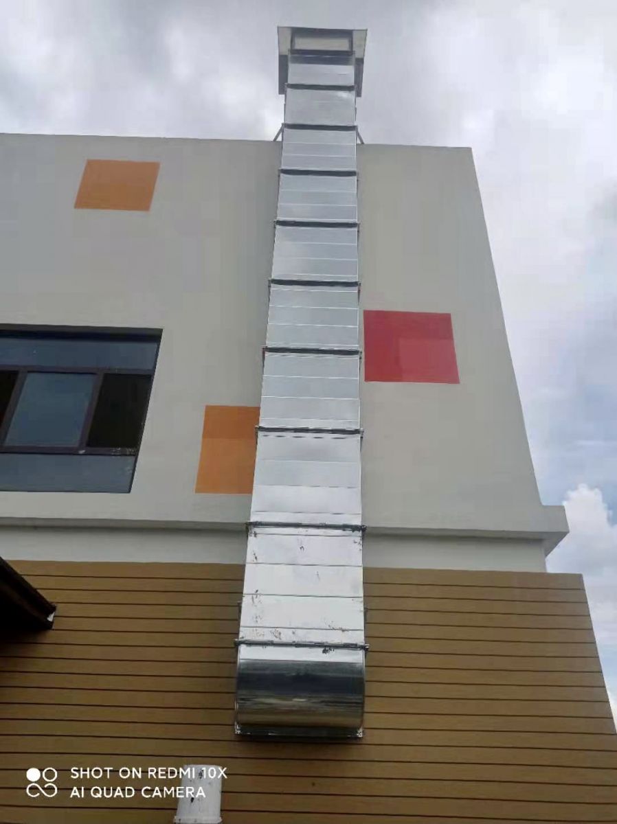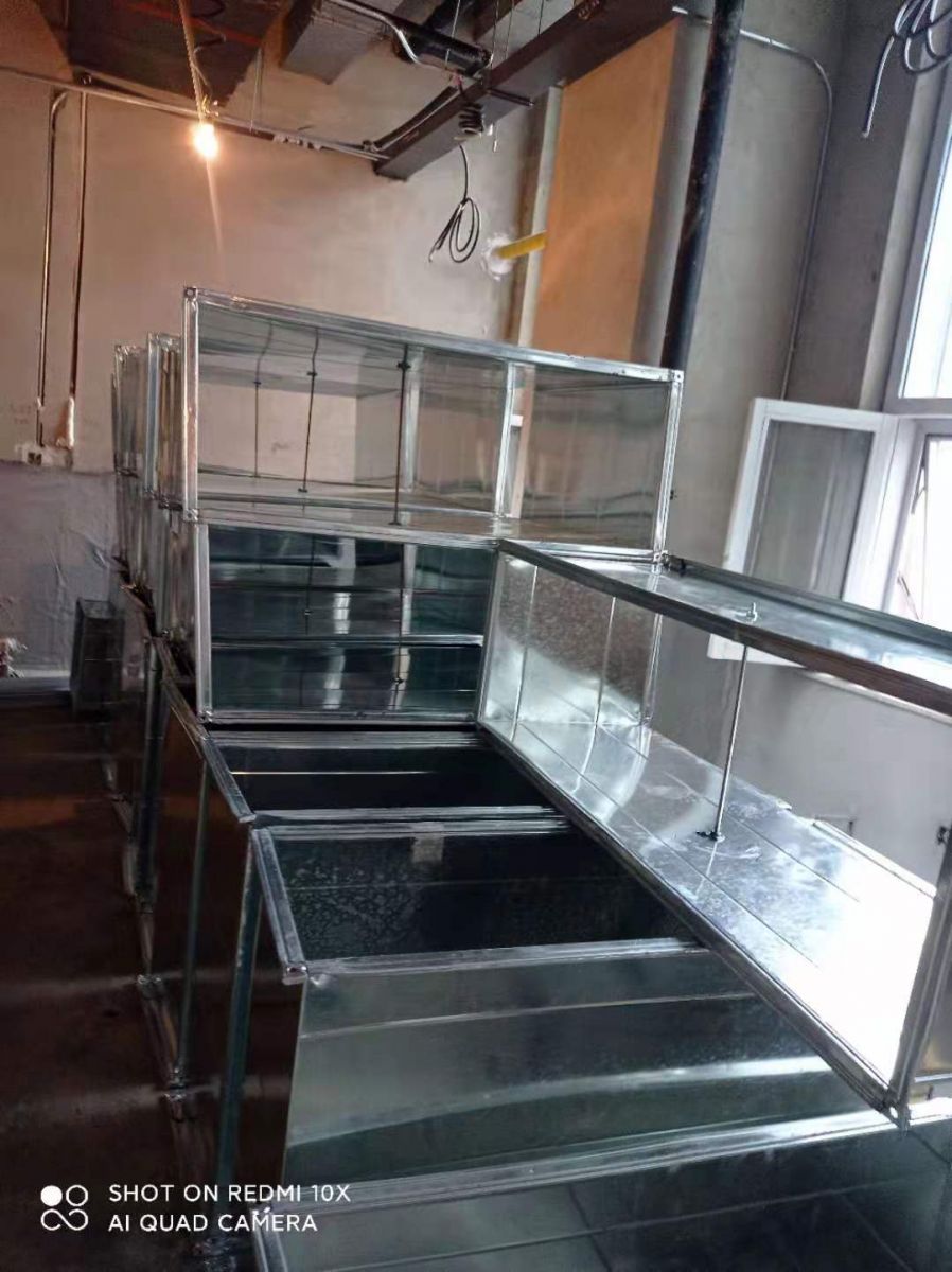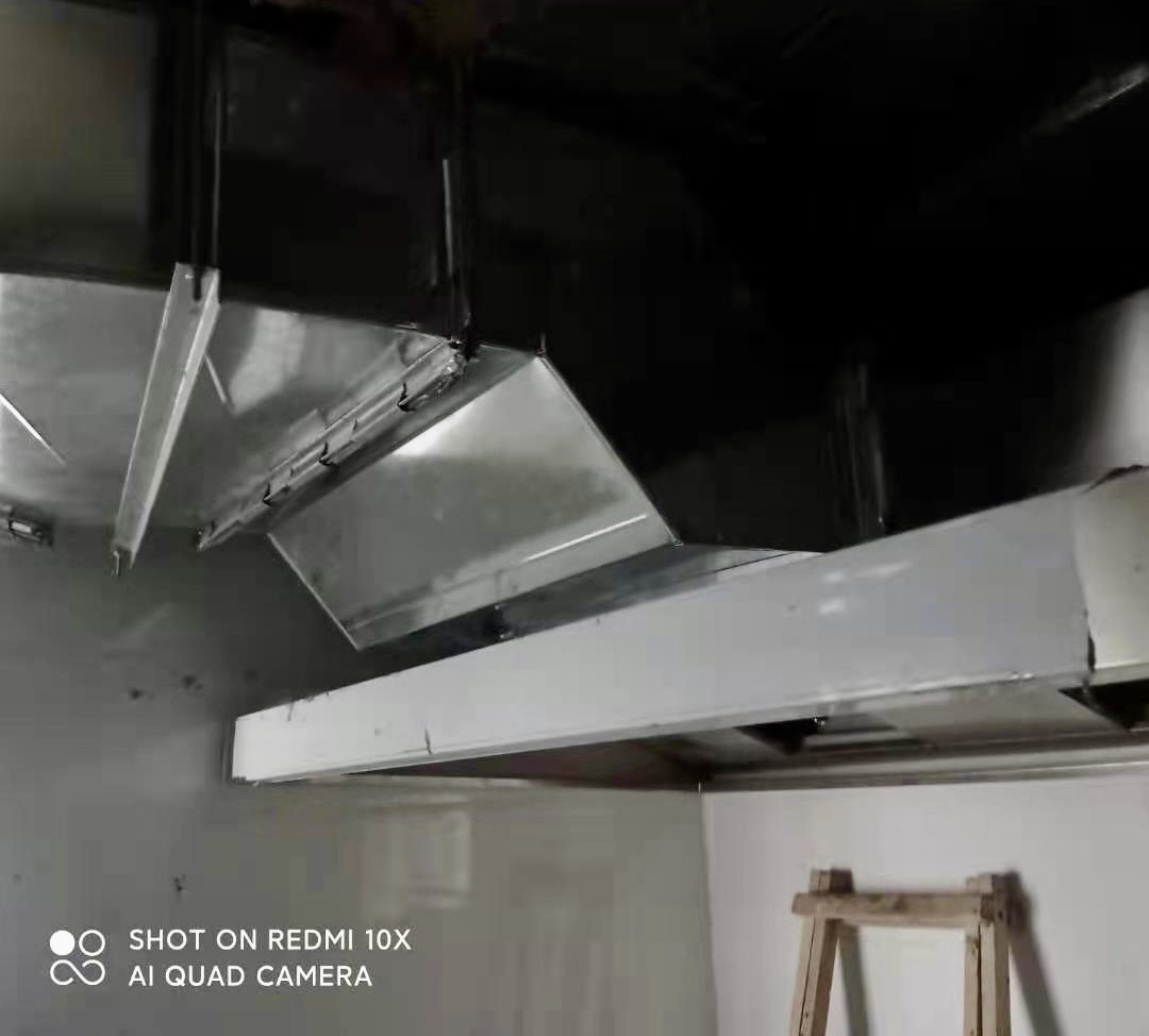 二樓風(fēng)機(jī)煙管安裝完畢,玻璃煙罩完成